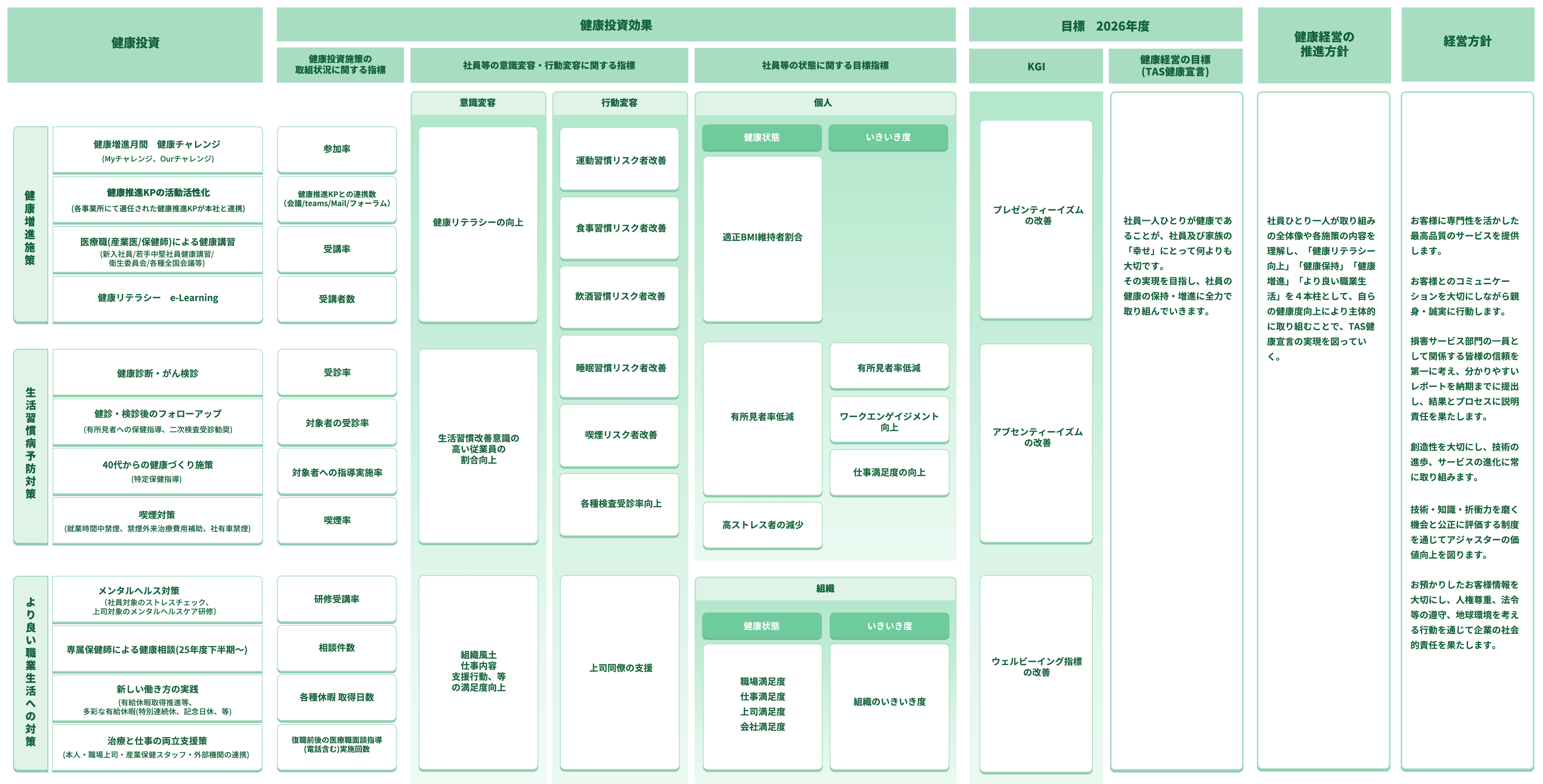 当社における健康経営は、何よりも社員の幸せ、そして家族の幸せにとって社員の健康が何よりも大切であるという一点に強い思いをもって取り組んでいます。